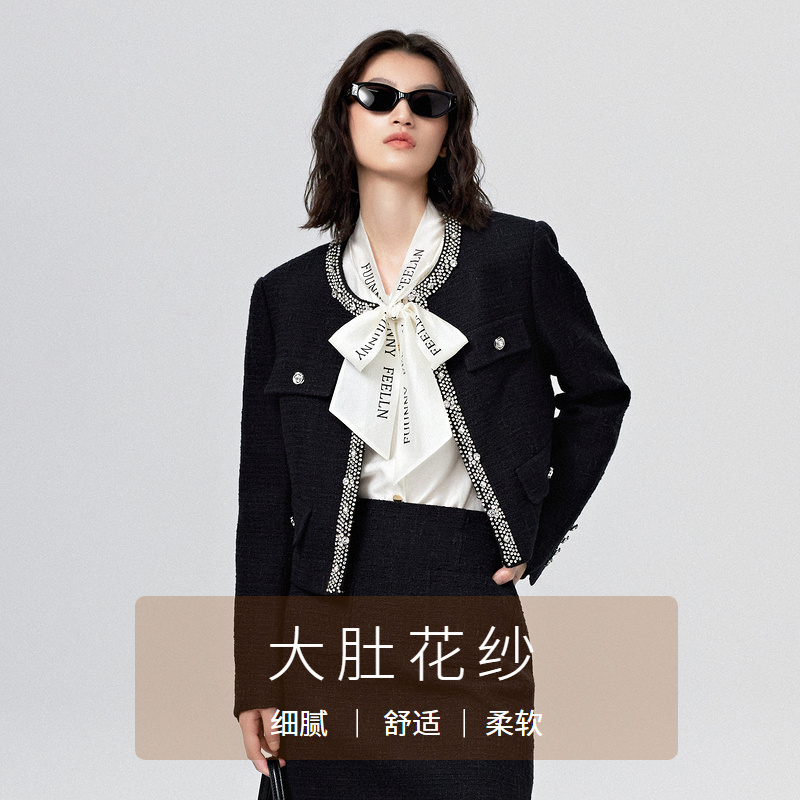 FF仿佛冬季 黑色小香风羊毛千金风短外套女洋气亮 新款