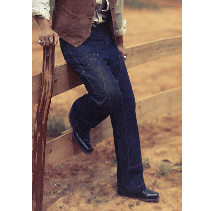 MBBCAR窄幅西部系列16.5OZ双膝伐木工靛蓝赤耳丹宁高腰阔腿工装 裤