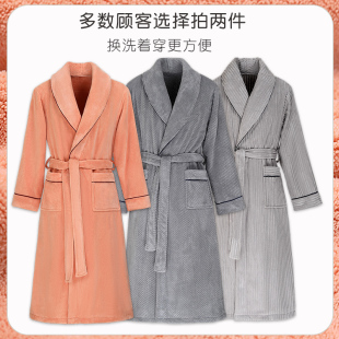 男女浴袍成人睡衣珊瑚绒吸水速干秋冬新款 成人情侣不掉毛浴衣睡袍