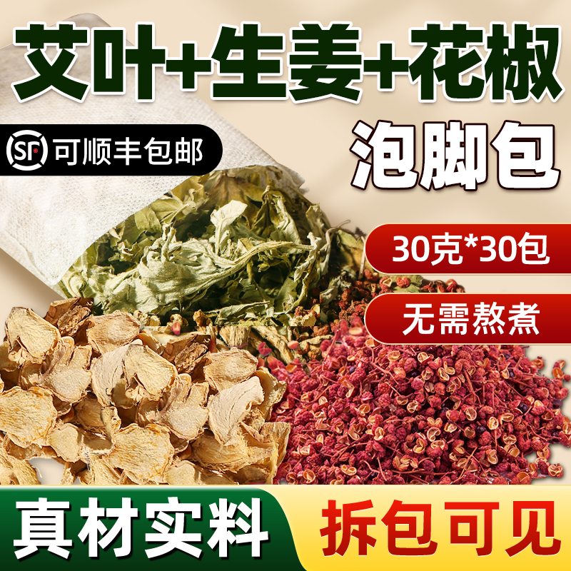 花椒生姜艾草叶泡脚药包中药材湿气祛寒排毒草本足浴包男女士专用