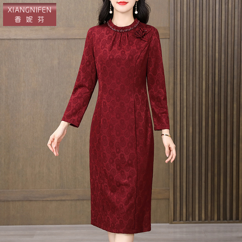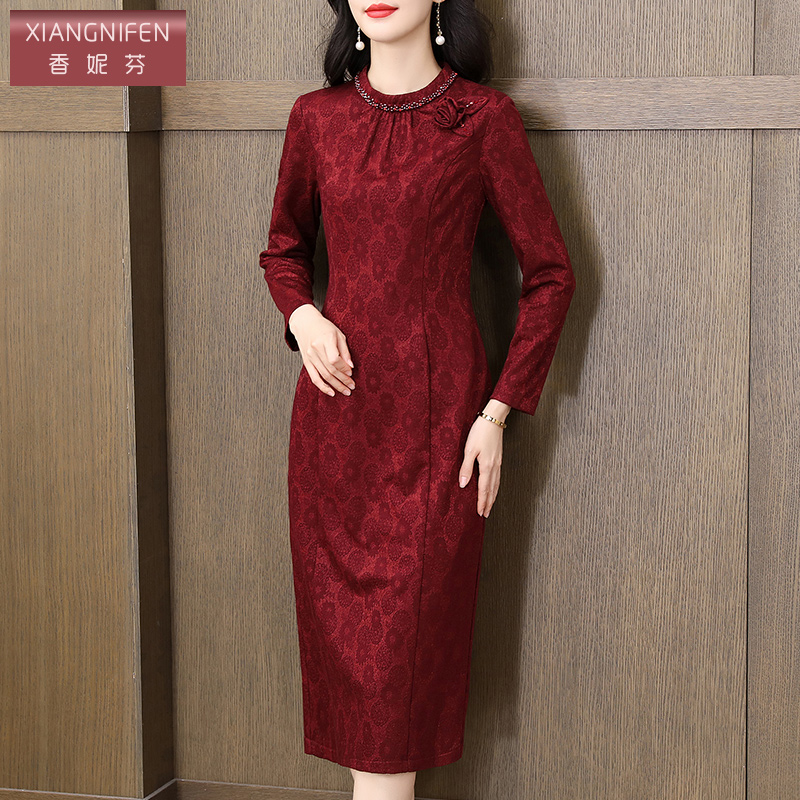 中年妈妈收腰裙 秋季 香妮芬秋季 气质阔太太洋气高贵连衣裙2025新款