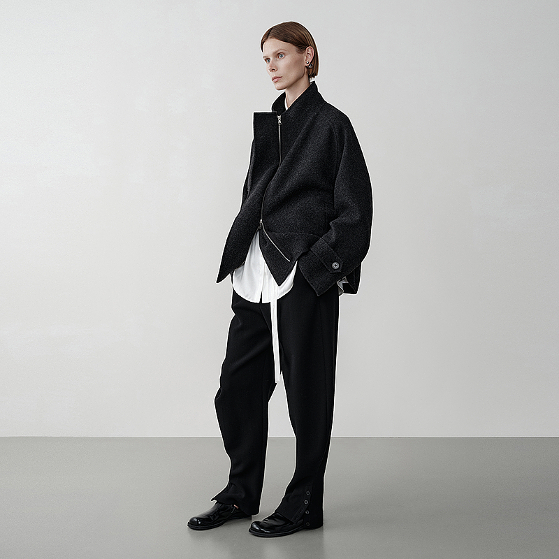 毛呢外套女2025秋冬款 复古翻领夹克棒球服 宽松百搭设计感小众美式