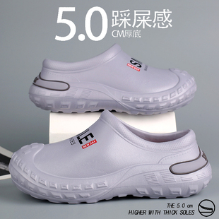 劳保厚底耐磨厨师工作鞋 踩屎感包头拖男士 黑色一脚蹬防水轻便大码
