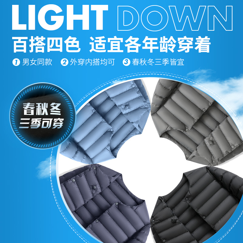 雪中飞轻薄羽绒服内胆男秋冬款 恤圆领百搭内外穿上衣 保暖内搭长袖