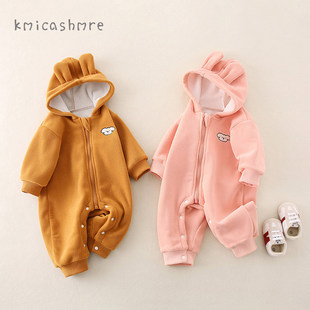 kmi婴儿连体衣2024秋款 奥粒绒哈衣外出爬服 男女宝宝周岁衣服韩版