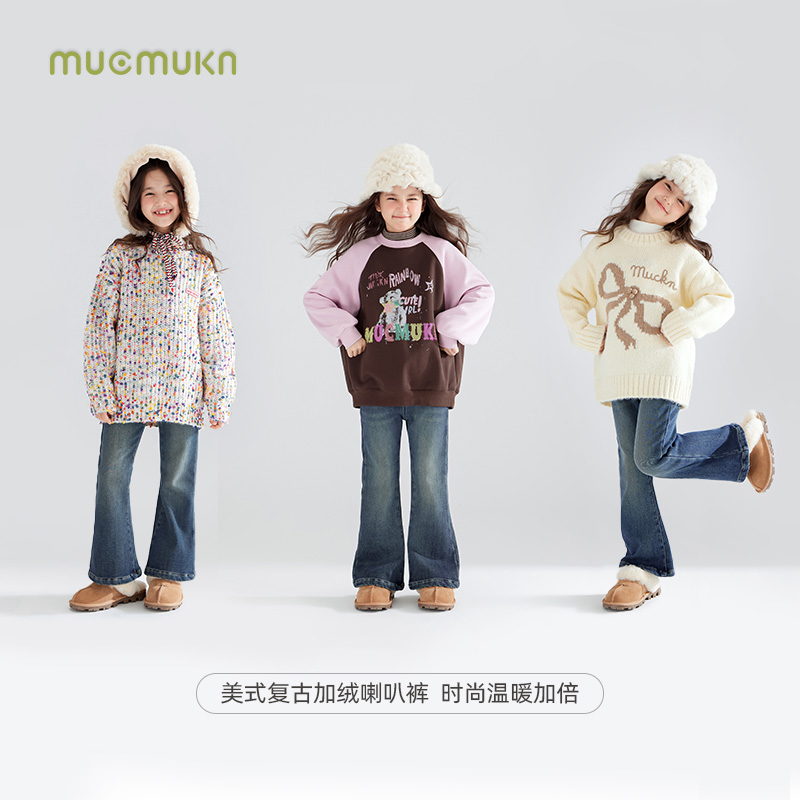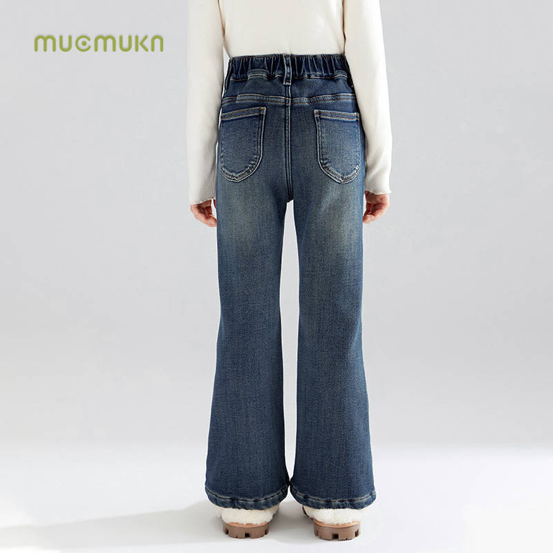 爱心扣女童冬季 复古不褪色喇叭裤 美式 保暖加厚儿童 厚实加绒