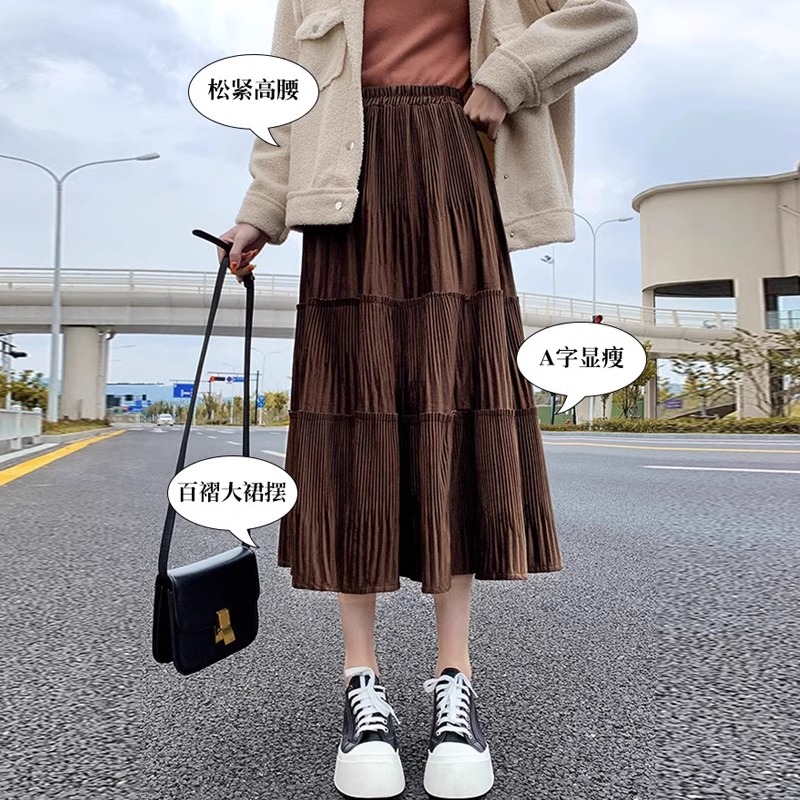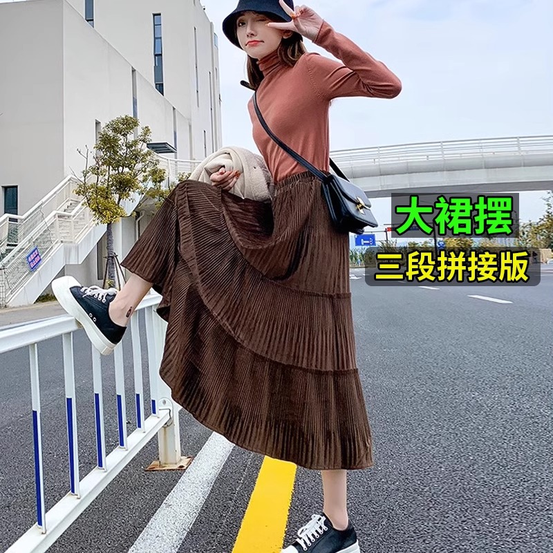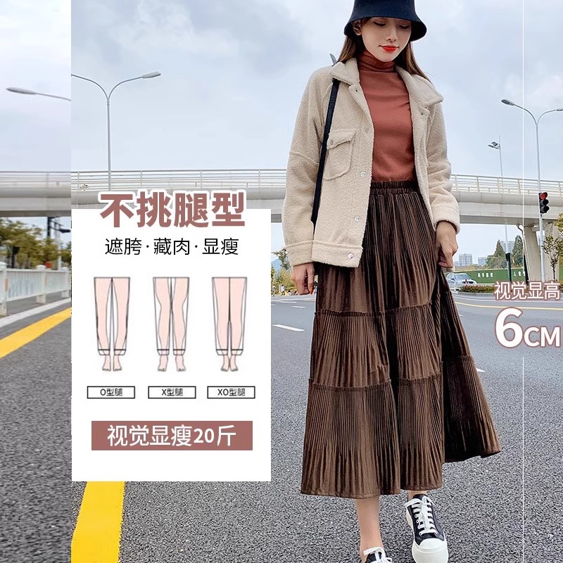 大码 百褶裙小个子高腰a字裙胖妹妹秋冬长裙子 胖mm半身裙女中长款