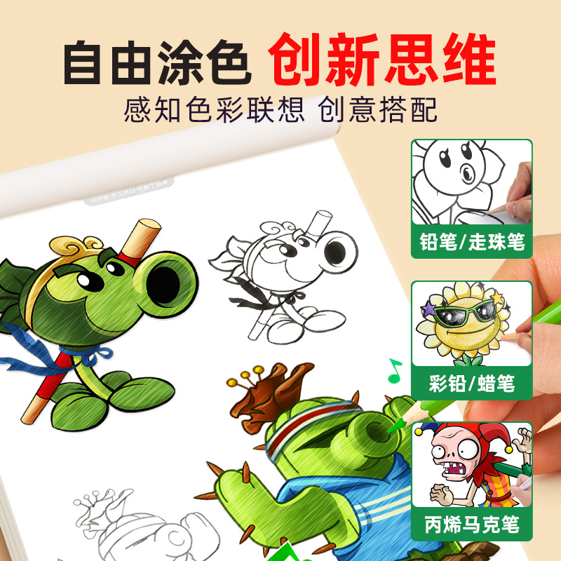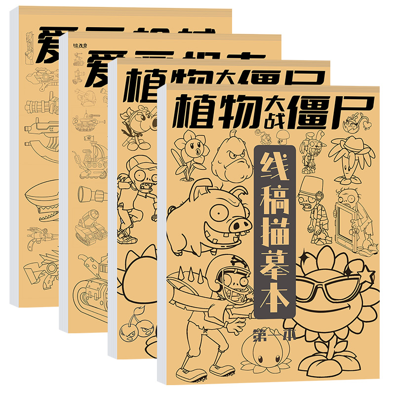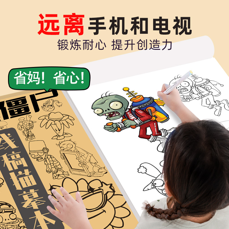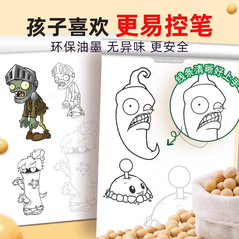 植物大战僵尸描摹本儿童漫画图画本卡通动漫涂色描绘画画本简笔画