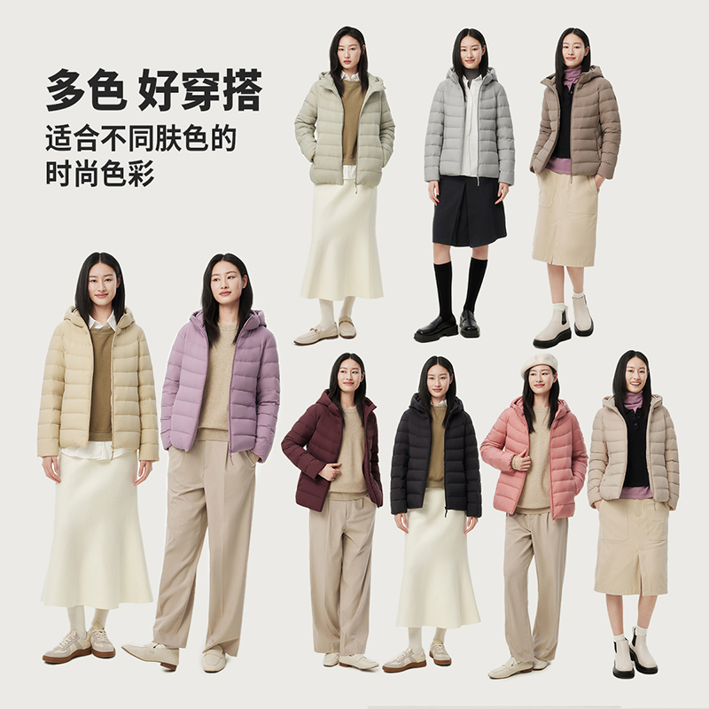 连帽修身 百搭休闲短款 保暖外套 时尚 鸭鸭轻薄羽绒服女士2025冬反季