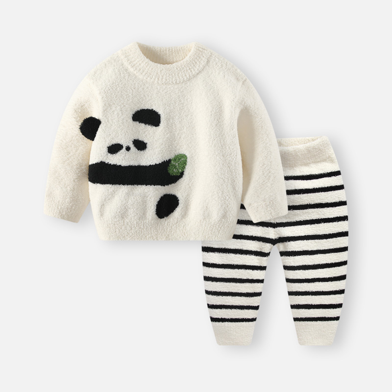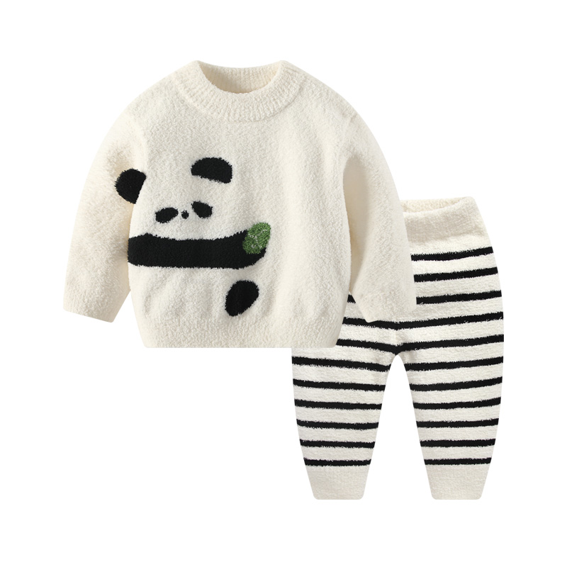 儿童套装 毛衣加厚衣服女 秋冬男宝宝半边绒家居服婴儿保暖睡衣冬装