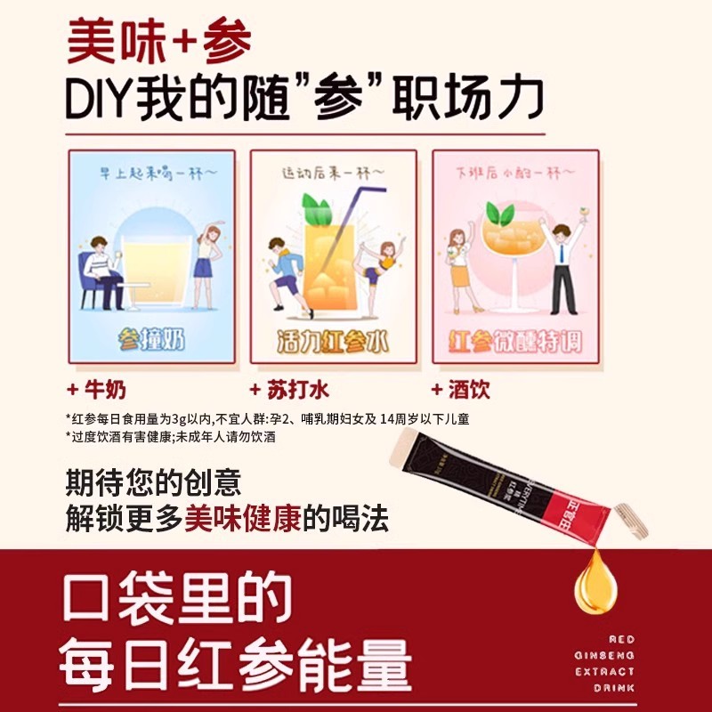 正官庄红参西洋参浓缩液石榴铁皮石斛灵芝柠檬 10g便携多口味