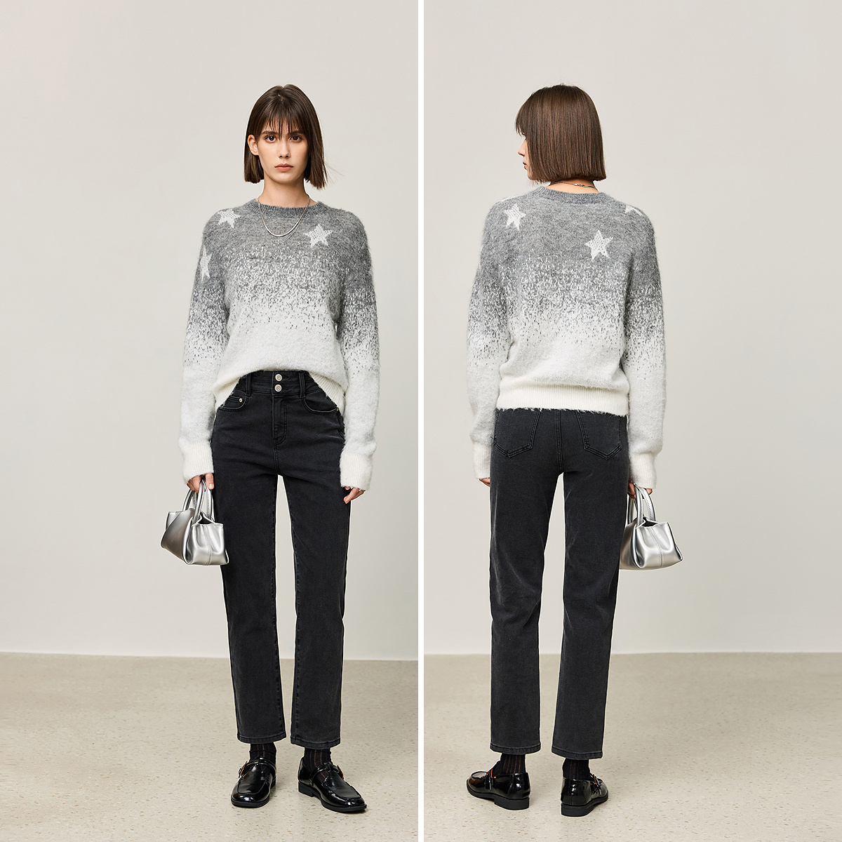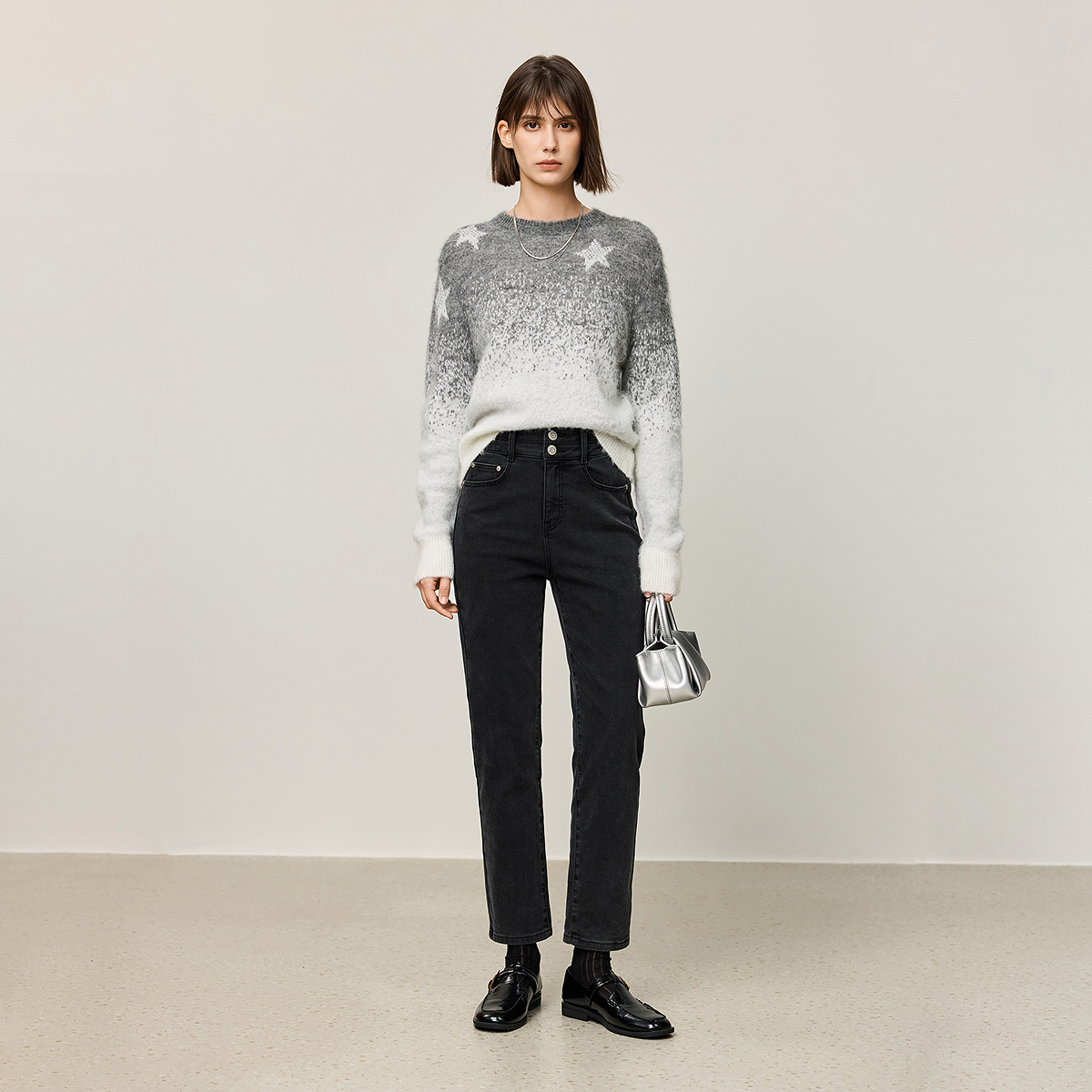 商场同款 黑色牛仔裤 LILY冬新款 磨毛九分瘦腿直筒裤 女 女装