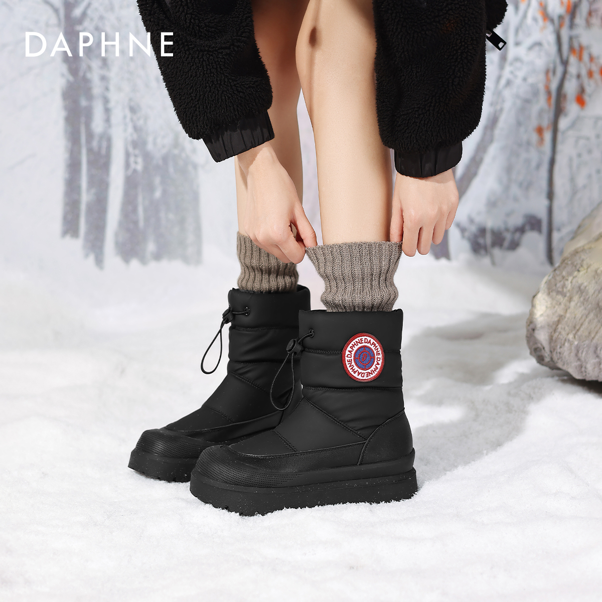 皮面冬鞋 达芙妮厚底白色雪地靴女款 加绒加厚东北棉鞋 冬季 2025新款