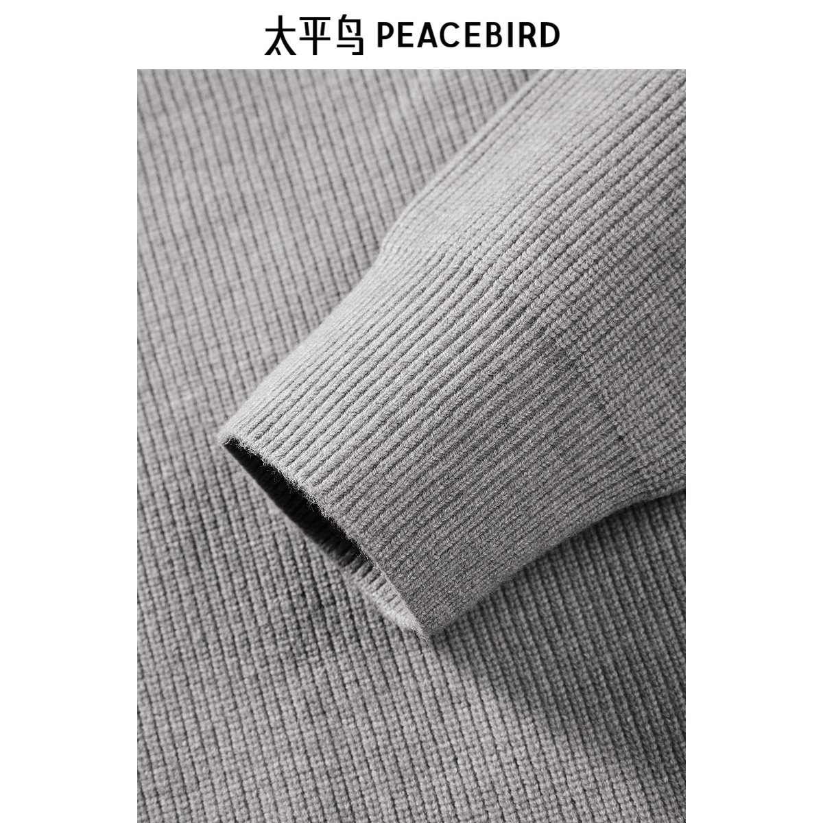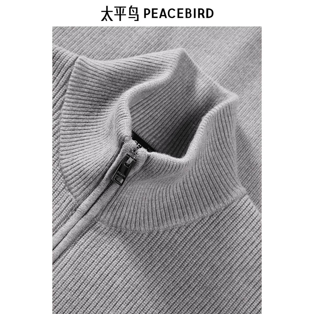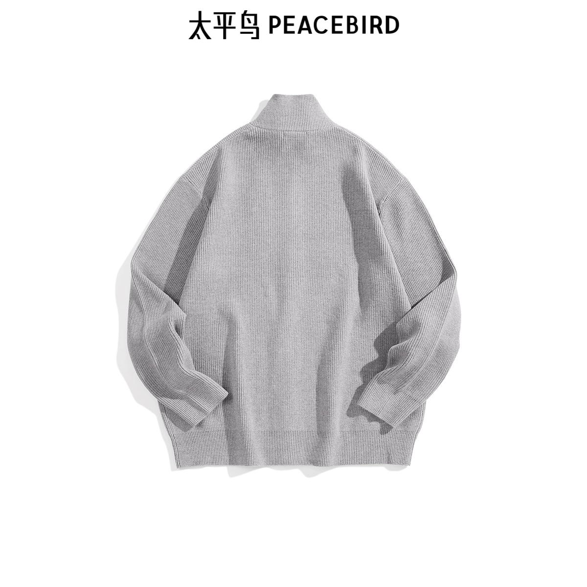 太平鸟男装 外套 炭烧棉面料宽松潮流休闲毛衣半高领拉链针织衫