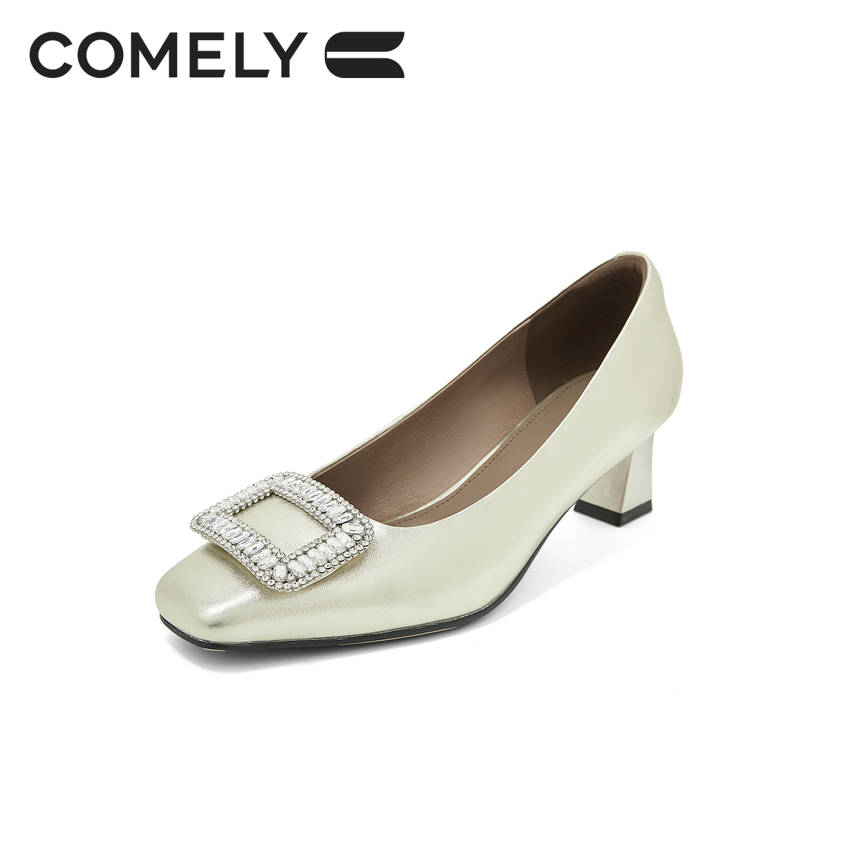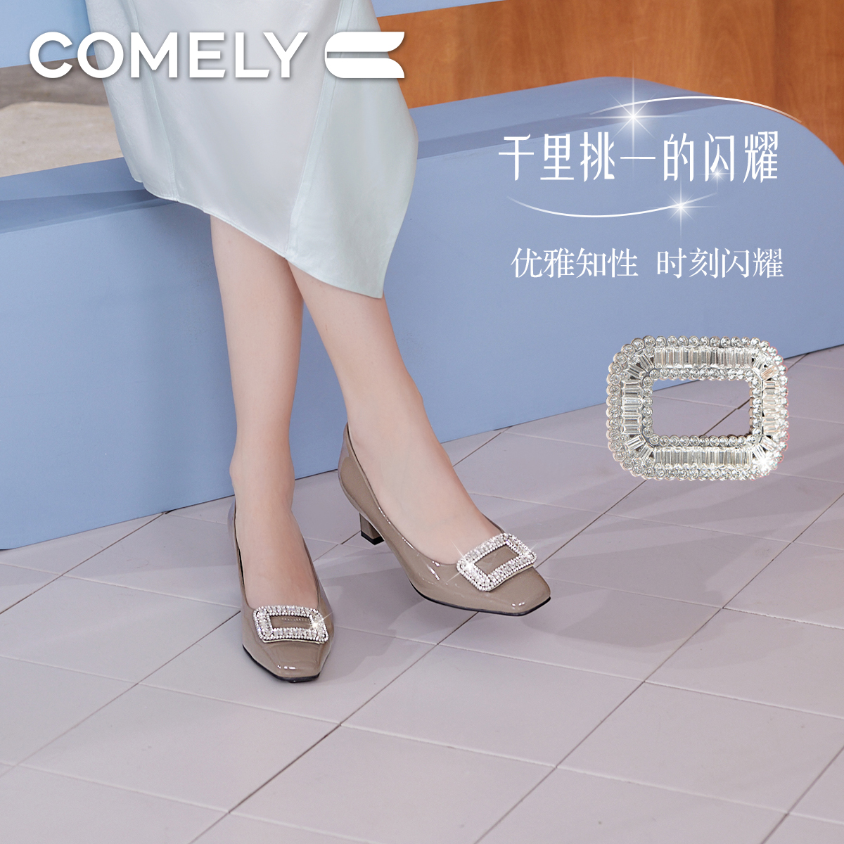 真皮粗跟方头防水台单鞋 康莉商场同款 新款 女2025年春季 水钻高跟鞋