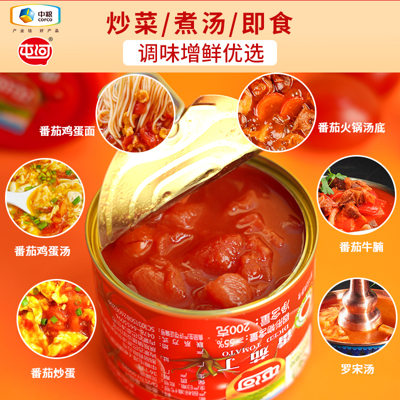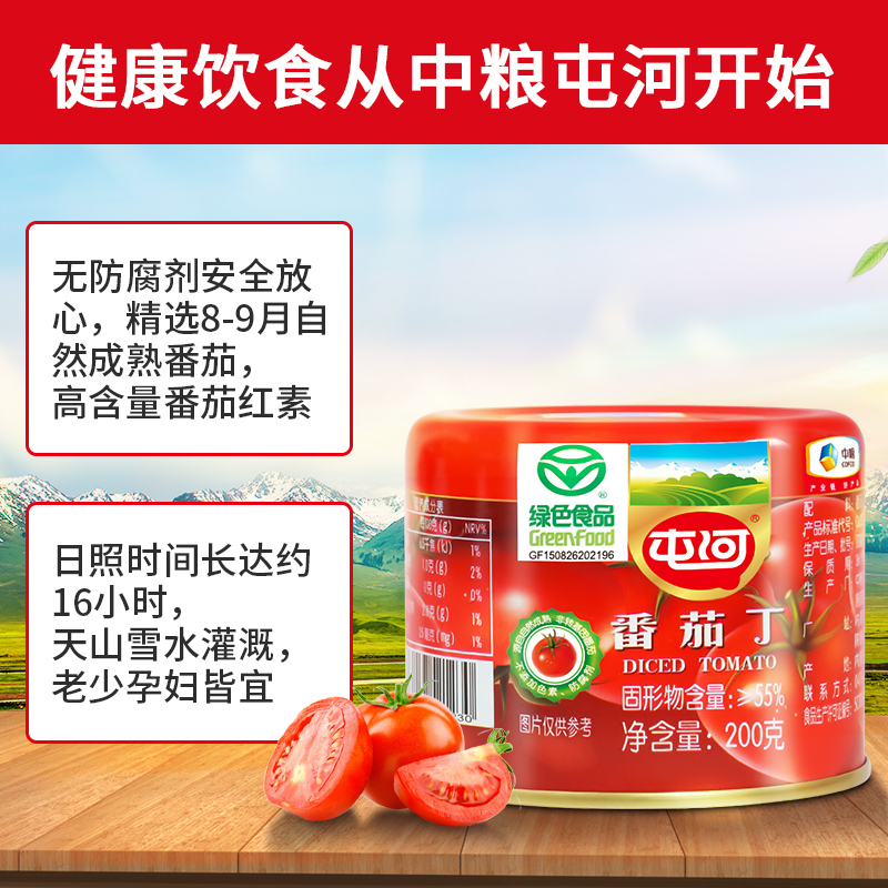 中粮屯河新疆内蒙轻食番茄丁绿色健康0脂西红柿块200g罐头