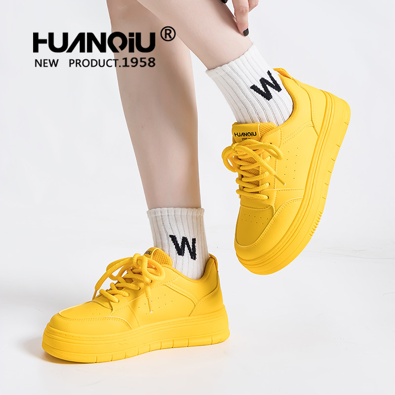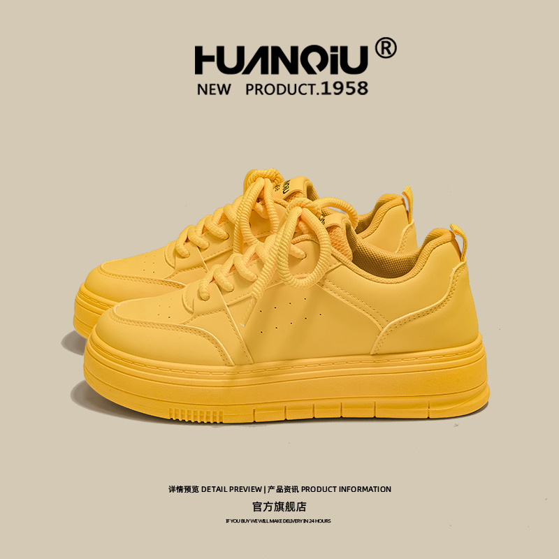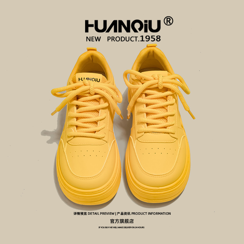 柠檬黄小白鞋 板鞋 子女2025春季 百搭厚底休闲鞋 新款 环球小众不撞款