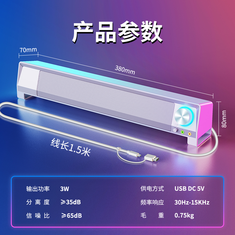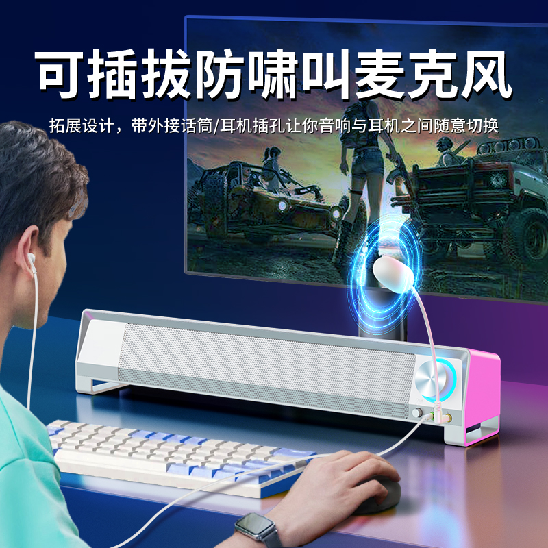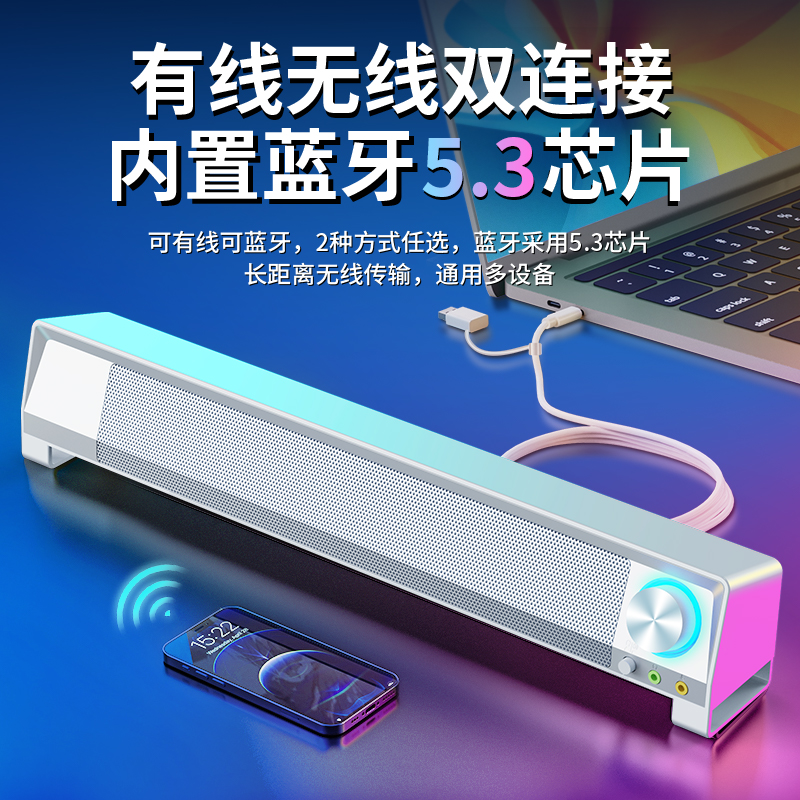 电脑音响台式 音箱桌面有线耳机 usb一线通家用蓝牙带麦克风长条式