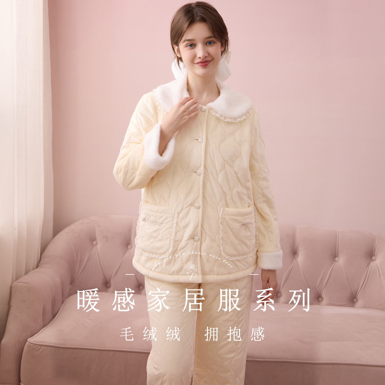 2024新款 RoseTree珊瑚绒睡衣女冬季 加绒加厚保暖法兰绒家居服套装