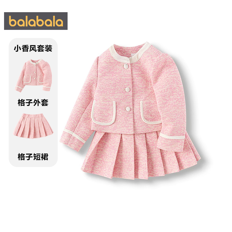 儿童红色拜年服 子外套春秋新款 巴拉巴拉女童裙子套装 宝宝小香风格