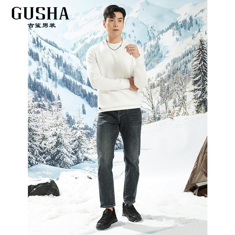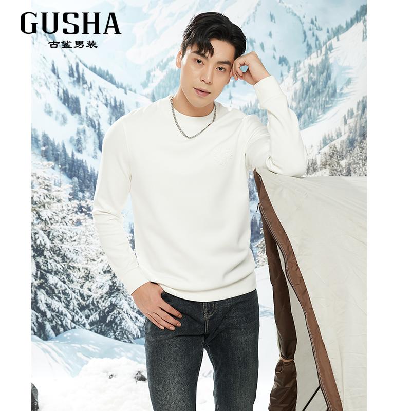 新款 古鲨白色莫代尔卫衣男柔软简约百搭刺绣长袖 T恤2025年冬装