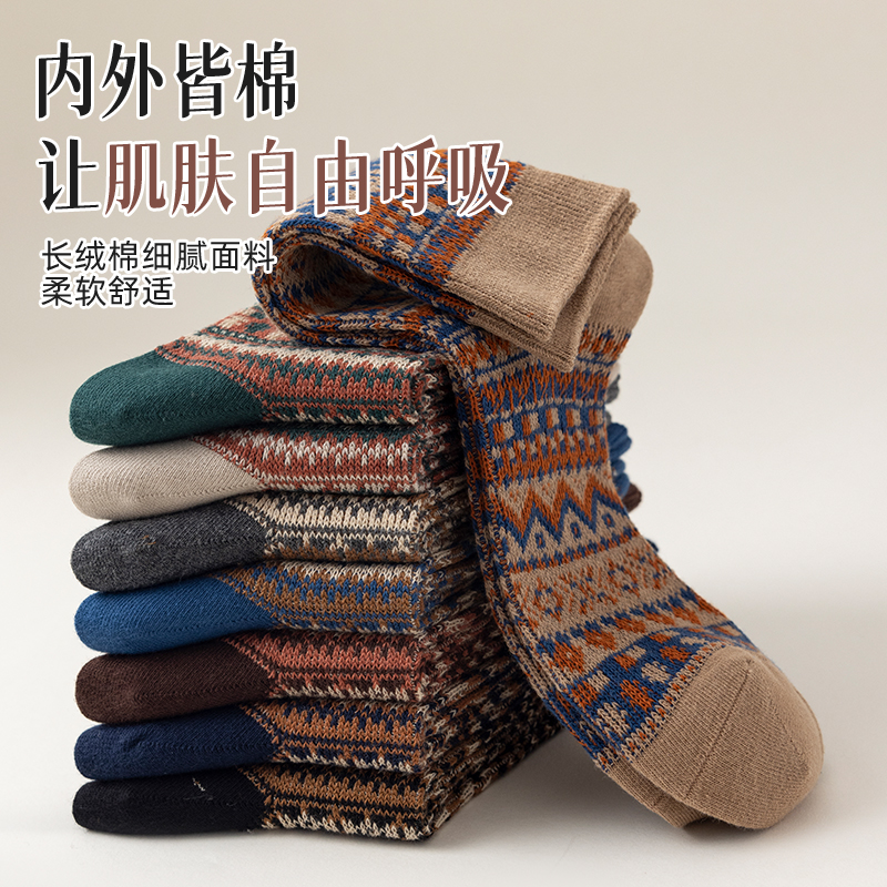 秋冬棉商务男士 吸汗长袜中筒运动袜春夏四季 长款 1双袜子男式