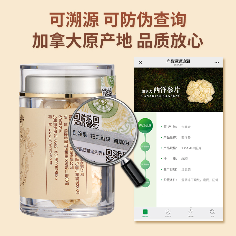 金日牌西洋参片25g加拿大进口官方正品 大圆片切片泡水花旗参 含片