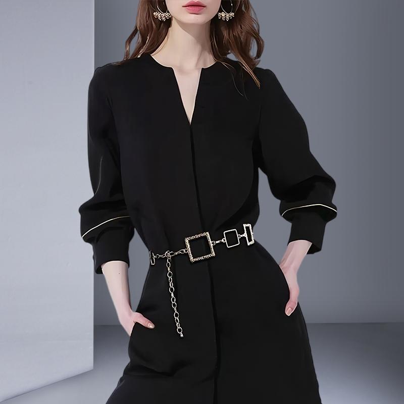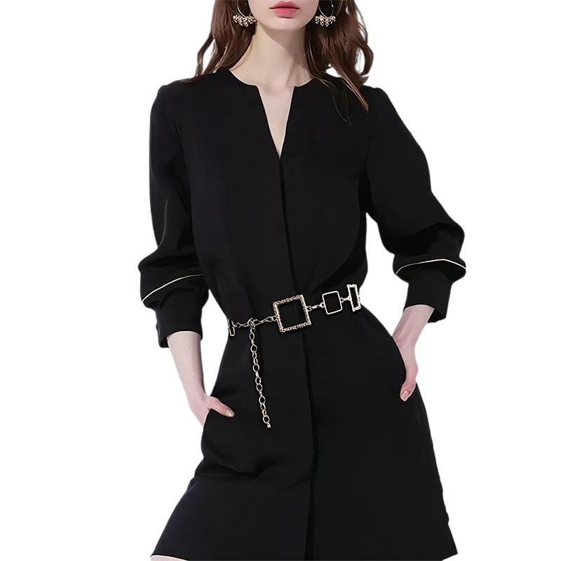 新款 连衣裙女秋季 高级感学院风a字花苞裙 撞色假两件衬衫 气质法式