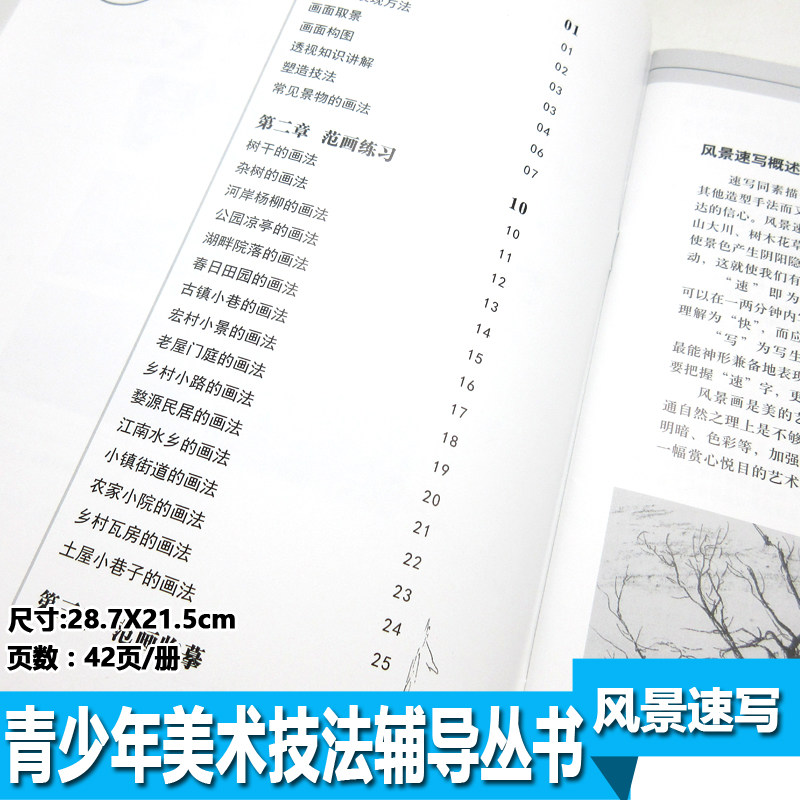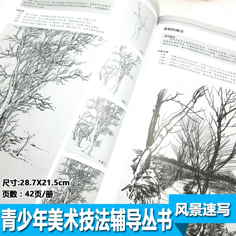 素描书自学教程建筑山水美术写生范本绘画线描铅笔钢笔 临摹零基础美术绘画入门教材美术培训版 青少年美术技法辅导丛书 风景速写