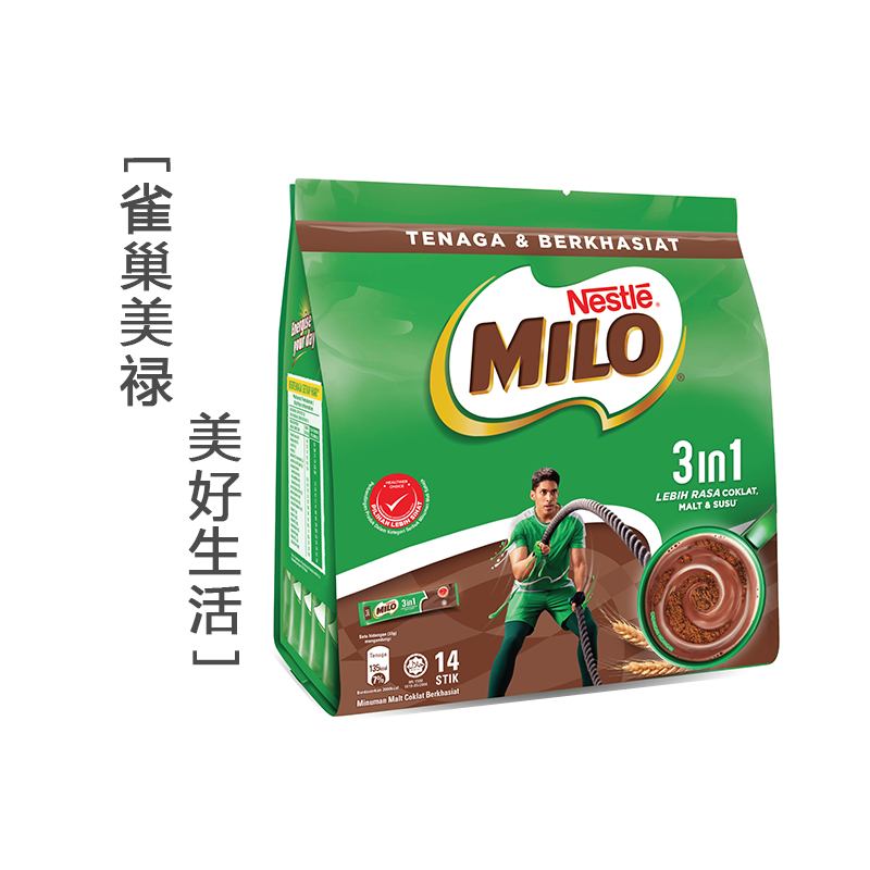 马来西亚进口雀巢美禄3合1活力GO可可饮料462g巧克力粉 自营