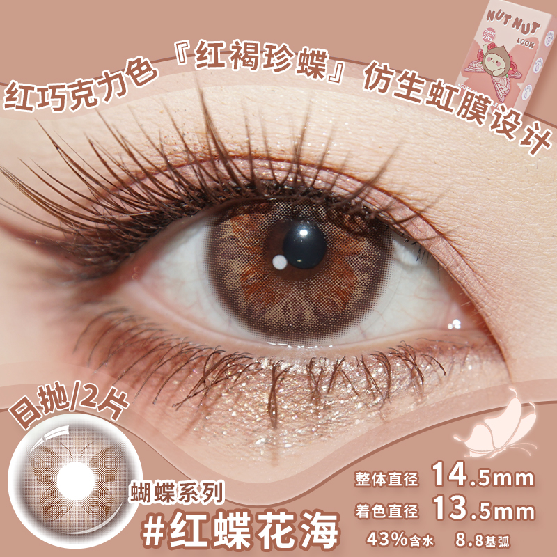 2片我 坚果力美瞳试戴装 试用 男孩蝴蝶系列日抛试用尝鲜 特价