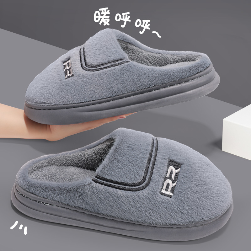 棉拖鞋 男士 男大码 老人居家用室内加绒厚底保暖拖鞋 2025新款 秋冬季