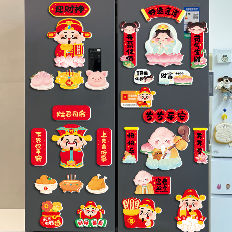 可爱卡通双开门冰箱贴网红装 饰磁贴立体磁力贴磁吸磁性贴自由DIY