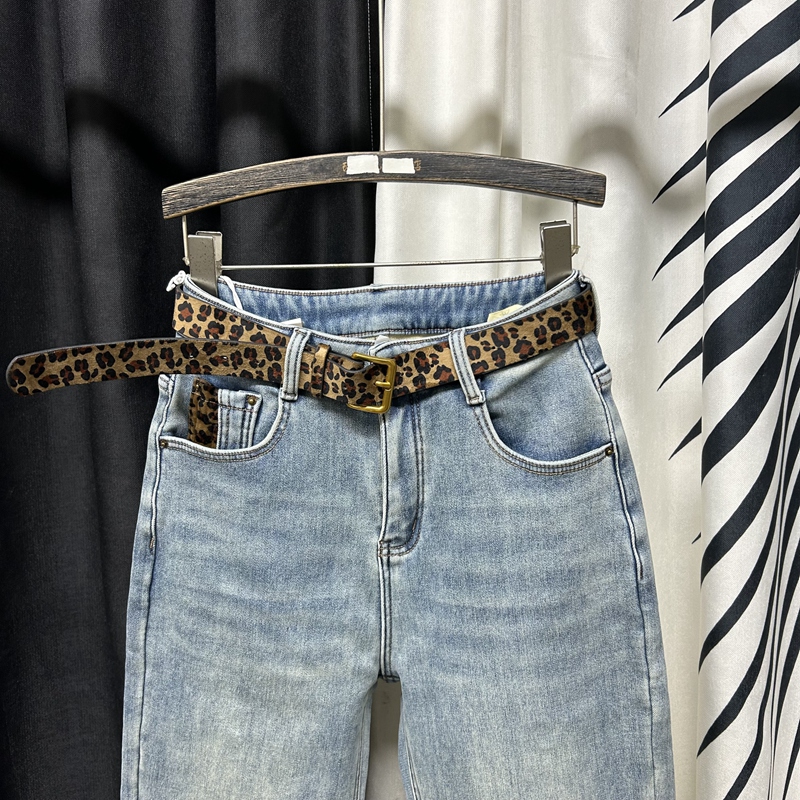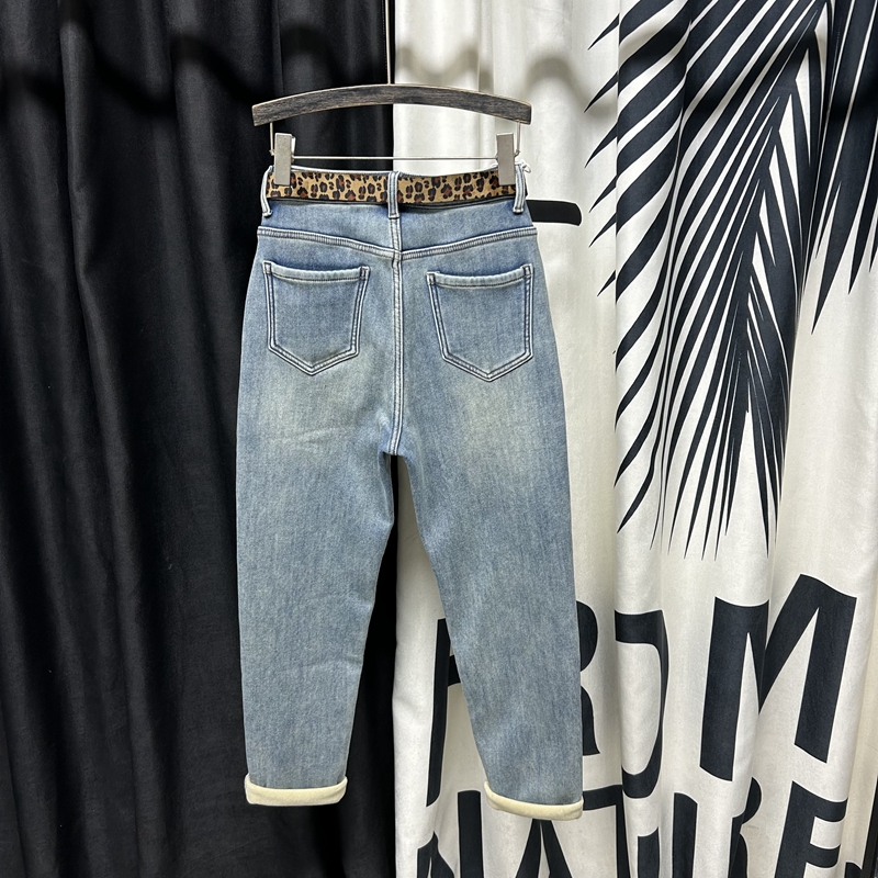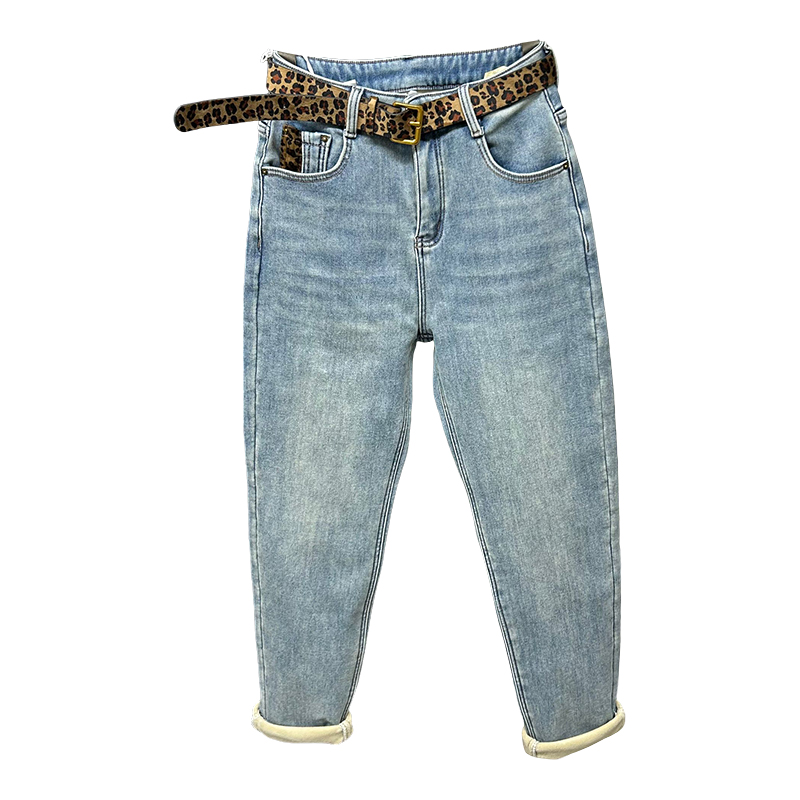 子 高腰小脚宽松百搭加绒老爹长裤 浅蓝色牛仔哈伦裤 女2024秋冬新款