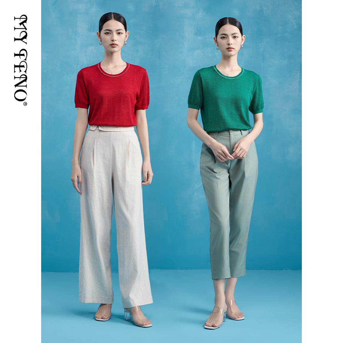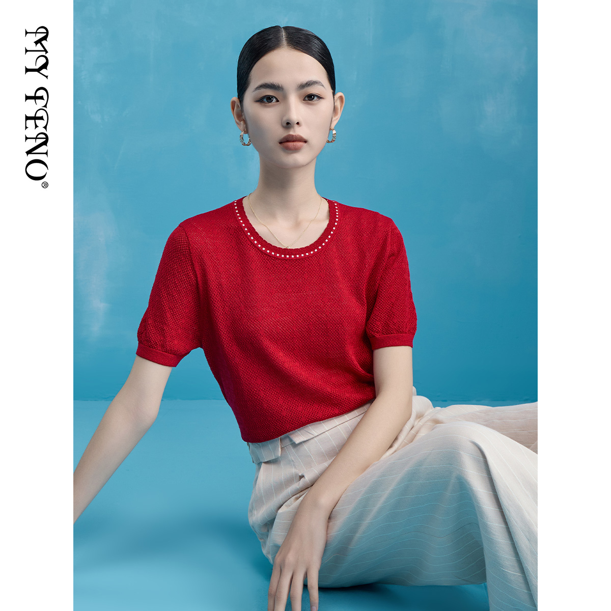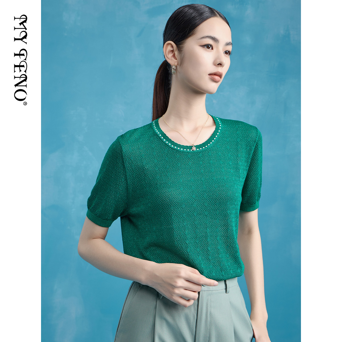 针织衫 条纹短袖 长袖 开衫 毛衣外套 RARN2025秋装 两件套圆领修身 新款