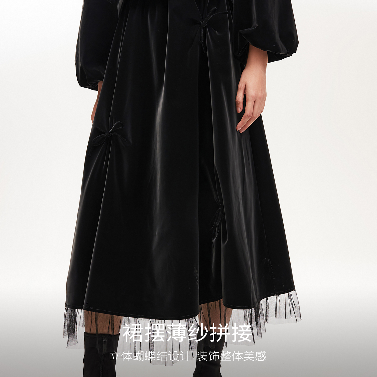 气质宽松下摆蕾丝拼接裙子女装 秋季 507358 2025新款 三福半身裙长款