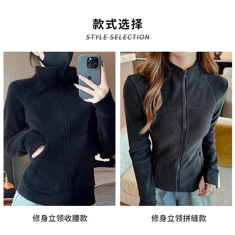 加绒瑜伽服内胆摇粒绒立领卫衣外套女春秋款 修身 新款 2025秋冬季