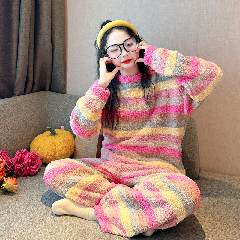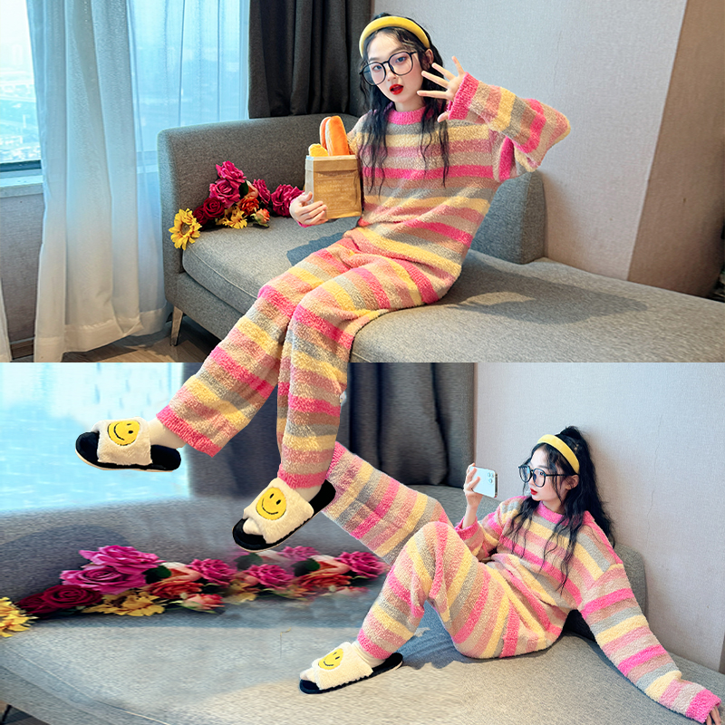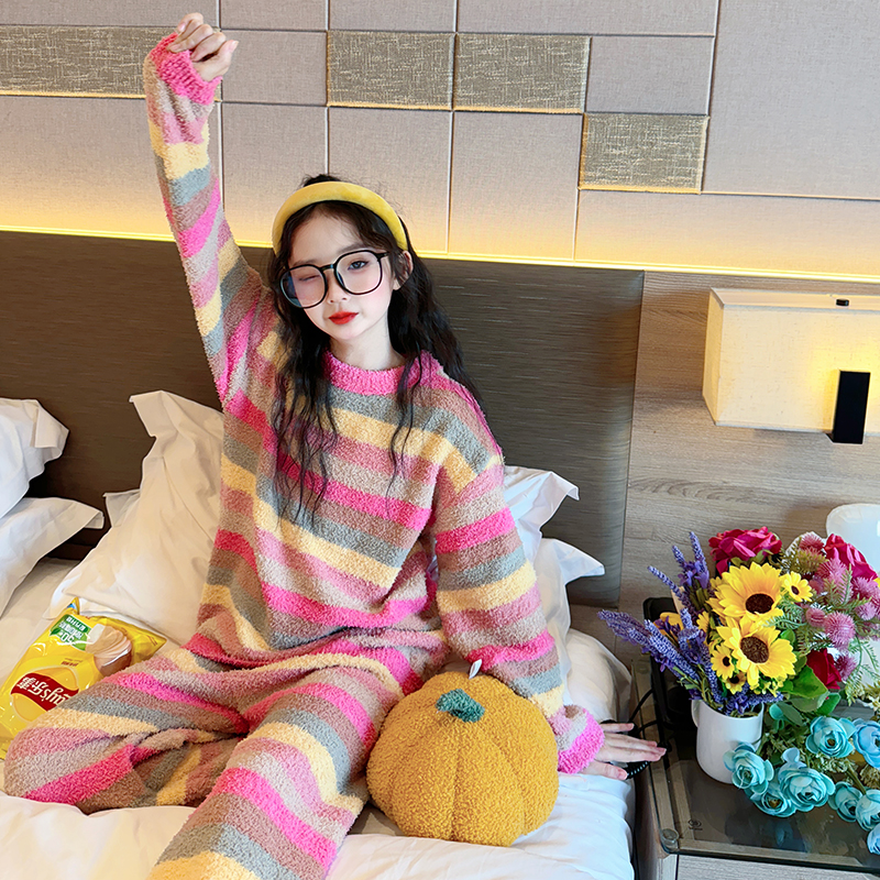 珊瑚绒保暖家居服套装 法兰绒睡衣女士可爱外穿加厚大码 新款 秋冬季