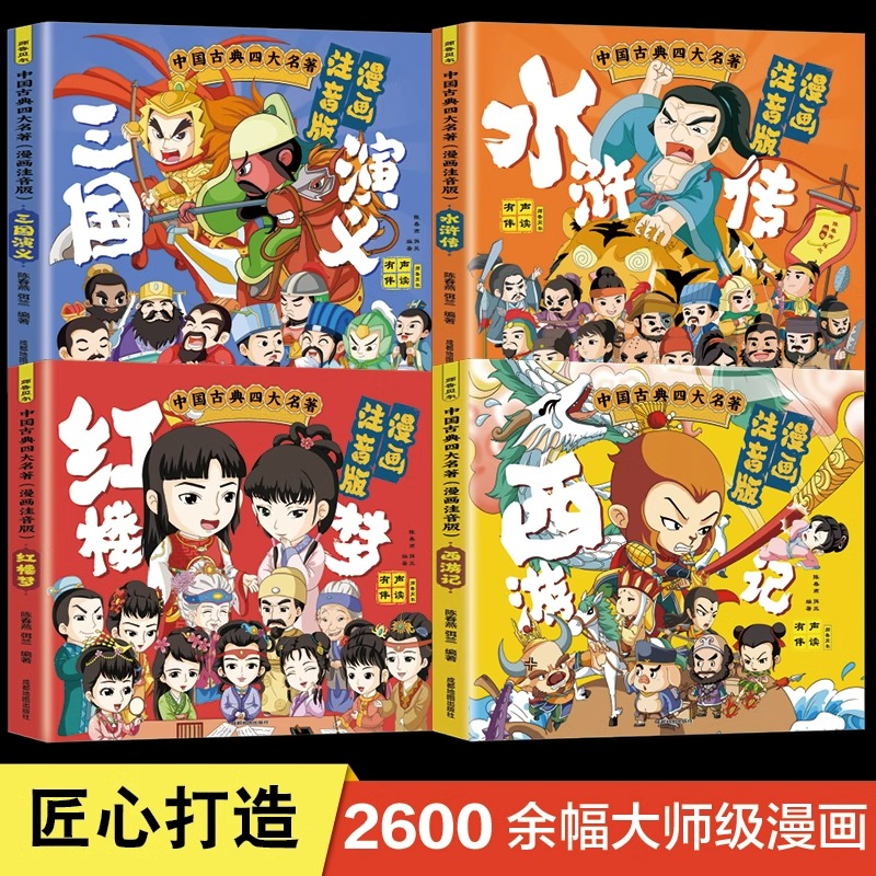 中国古典四大名著全4册漫画注音版 西游记三国演义水浒传红楼梦