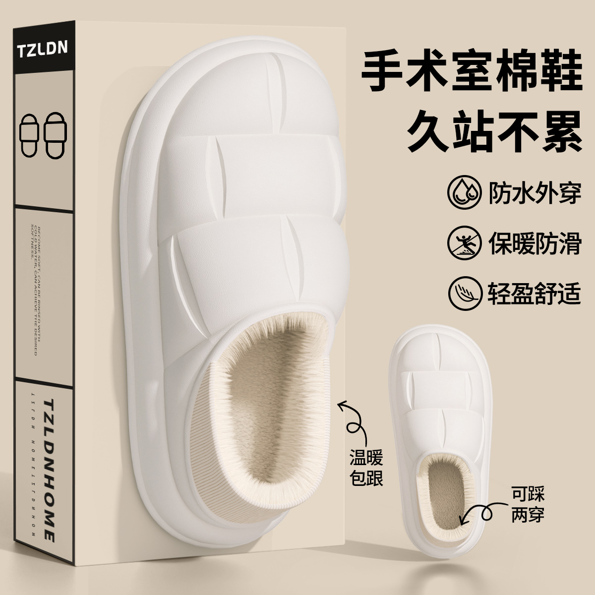 加绒防滑防水棉鞋 手术室棉拖鞋 厚底医护士鞋 2025新款 包跟 女秋冬季