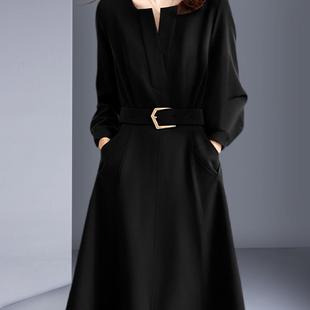 富家千金风收腰a字裙 2025新款 法式 赫本风假两件黑色连衣裙女秋装