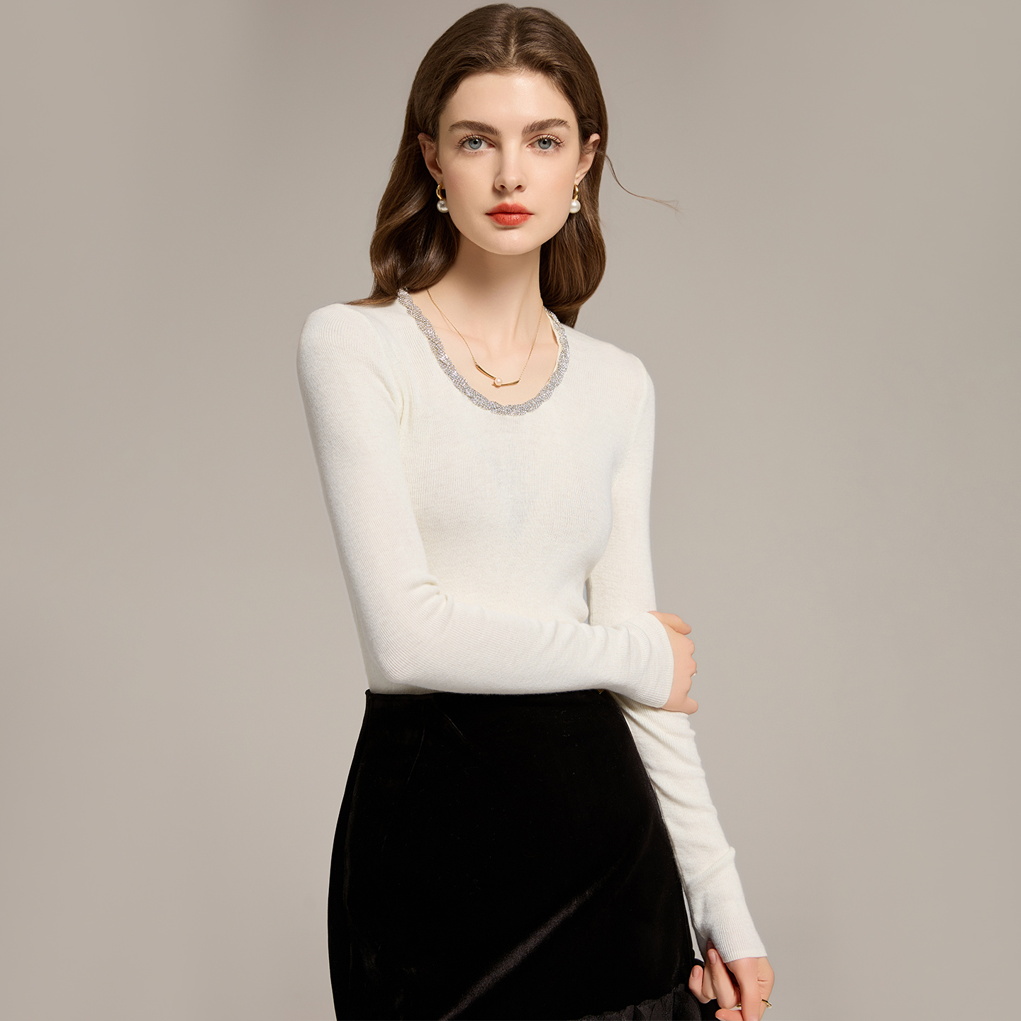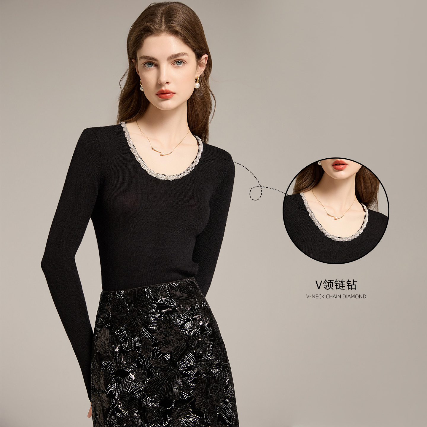 女长袖 高级感一线成衣圆领毛衣秋冬女内搭无缝修身 显瘦针织打底衫