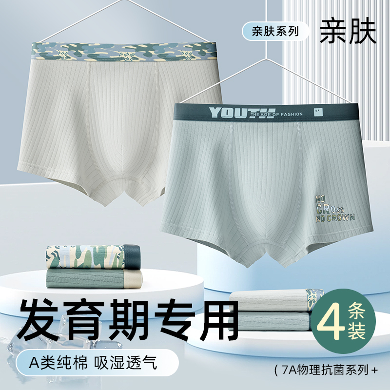 胖大童男生加肥加大码 青少年男童发育期学生初高中生男孩纯棉 内裤