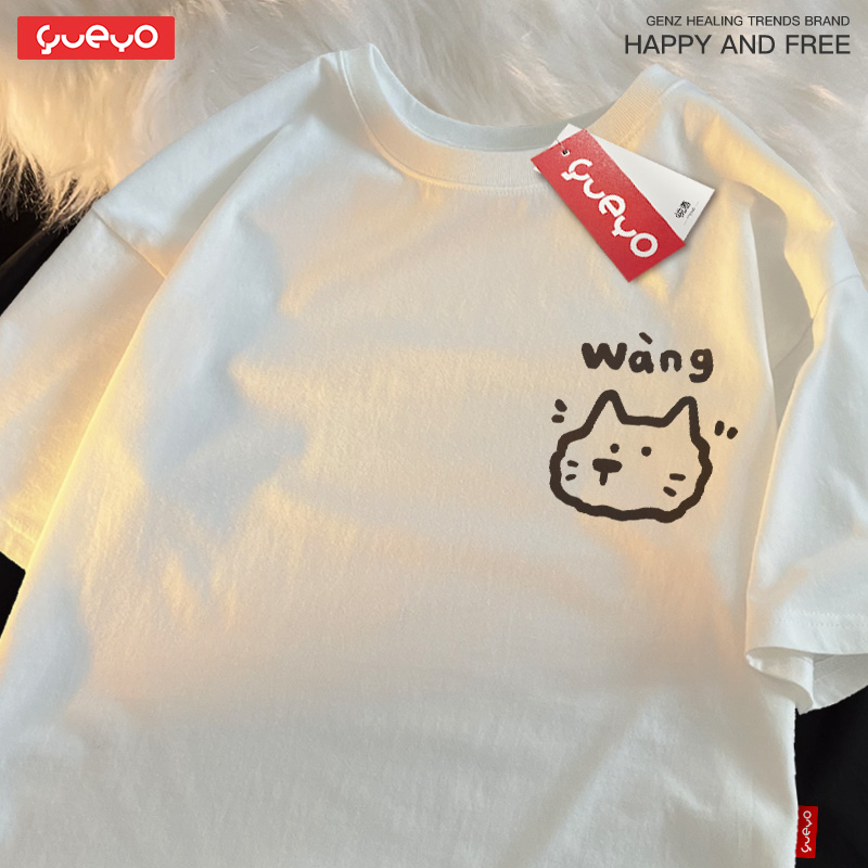 T恤情侣装 纯棉趣味中性风原创潮牌印花夏情侣短袖 hello猫狗 悦游