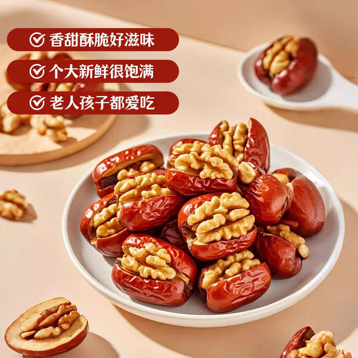 新疆特产红枣夹核桃仁 超大和田大枣夹纸皮核桃抱抱果零食 包邮