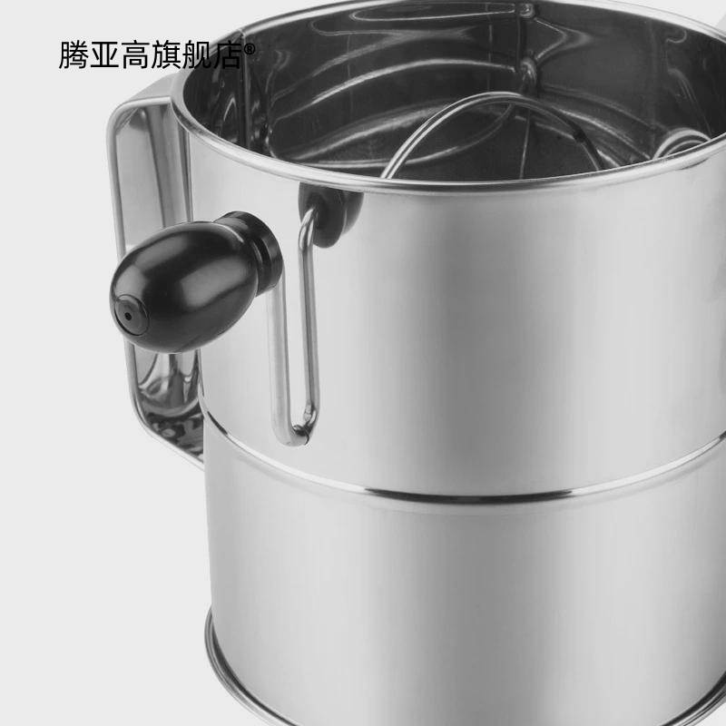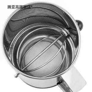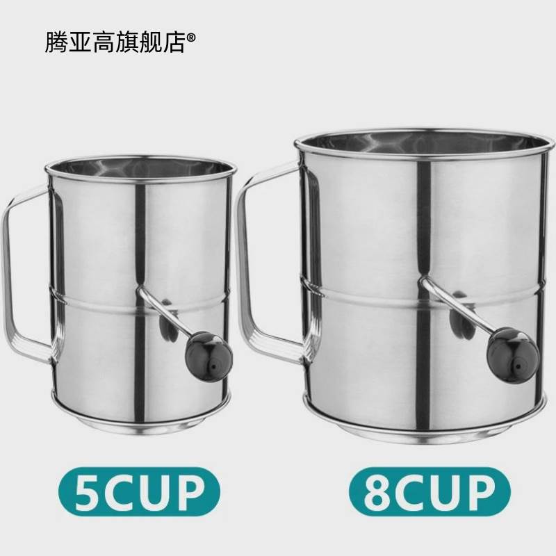8cup不锈钢面粉过滤筛带旋转搅拌环细网手动蛋糕制作烘焙糖粉