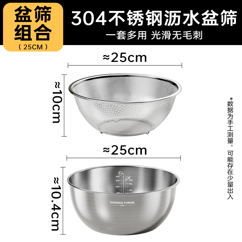食品级316不锈钢盆家用厨房和面盆汤盆洗菜盆沥水篮盆子漏盆特厚