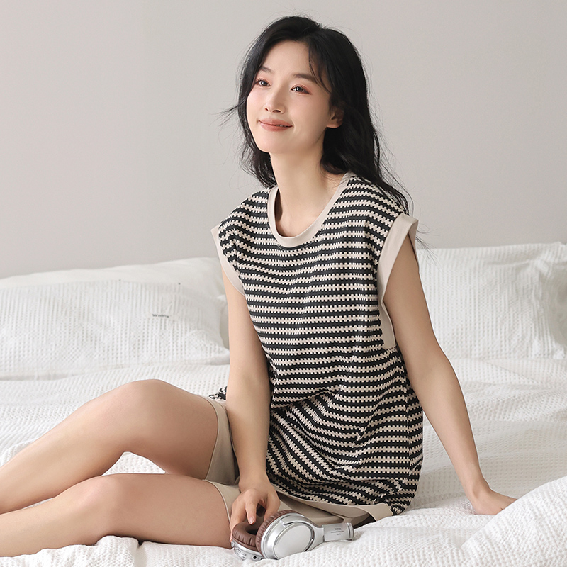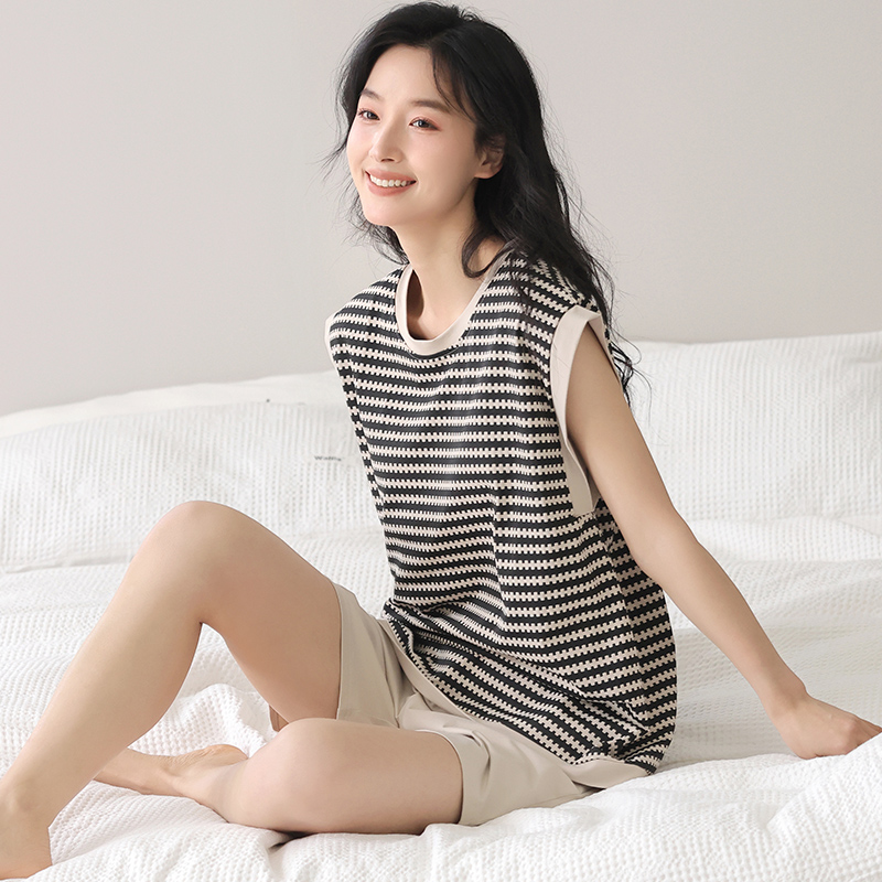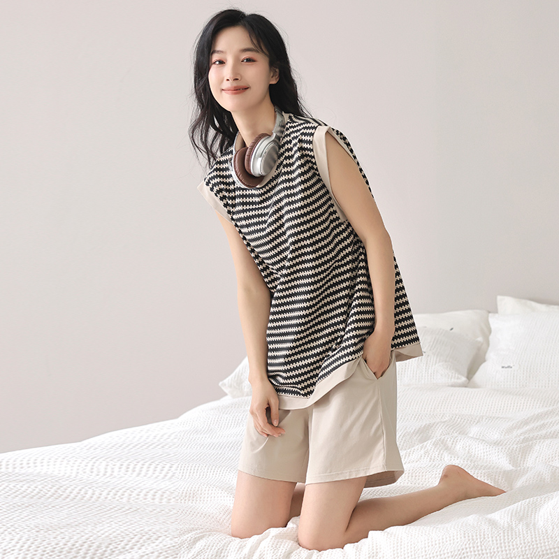 睡衣女夏季 带胸垫家居服套装 纯棉无袖 休闲薄款 背心短裤 2025年新款