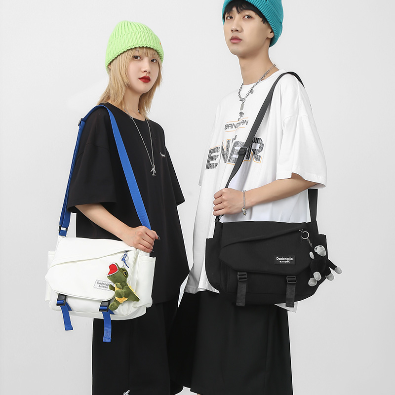 男士 邮差包休闲ins大容量男包潮牌单肩包女 斜挎包机能日系风工装