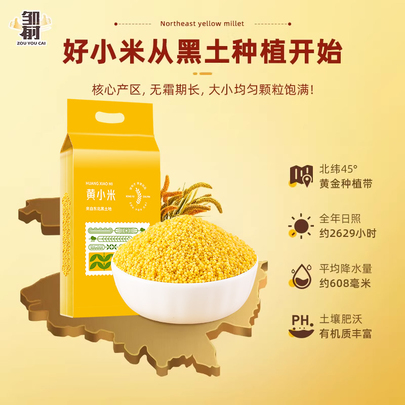 新货东北黄小米新米五谷杂粮粘糯小米粥非特级真空装 粗粮特产黄米